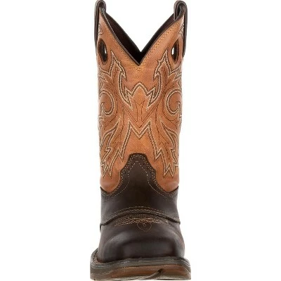 The upper of this Rebel™ by Durango® Western has been constructed with full-grain leather. The stitching on the tan shaft is handsome and there is a toe bug stitch on the brown-hued foot. A dipped topline and finger holes will allow you to get this 11″ squared-toe boot on/off with ease.Inside of this western boot, there is a contoured footbed. It provides cushioning that will keep your feet at ease, it’s ventilated so your feet will have great aeration and it is removable so you always have the option of adding in another insole once this one starts to wear down.The tempered steel shank is another great feature to have, because it gives you steady footing and provides support to your foot’s arches.The Rebel outsole is made from a blend of rubber and EVA; this combination gives the outsole flexibility, makes it comfortable to stand on and keeps it lightweight. There is also a lower 1 3/8″ heel; this allows you to maintain a steady stride.These Rebel™ by Durango® Saddle Up Western Boots) have a great look, are comfortable to wear and are just a pair of men’s boots that you’ll want to wear daily.