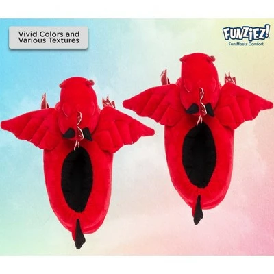 A little magical fire with these plush dragon creature slippers with cushioned support by FUNZIEZ! These adorable mystical dragon slippers are ultra soft and comfortable enough to lounge around in the house for hours. The front is designed to look like a dragon, featuring shiny scales, wings, arms, and a tail in the back. No actual fire here, but super soft, minky fur fabric lining will give you warmth and comfort. Perfect for dragon lovers and for any fans of magical creatures! Spread some happiness and joy on porpoise every time you or someone else looks down at the adorable little guy surrounding your toes.