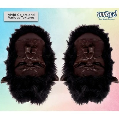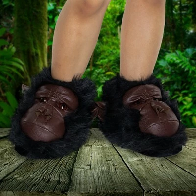 Lover of wild beast, get cozy with these faux fur gorilla animal slippers with cushioned support by FUNZIEZ! These adorable wild animal house shoes are ultra soft and comfortable enough to lounge around in the house for hours. The cute novelty top is designed to look like a gorilla head, featuring realistic eyes and face, the long shaggy fur provides comfort and warmth. FUNZIEZ! Gorilla Slippers are perfect for the wild animal-lover in your life or treat yourself!