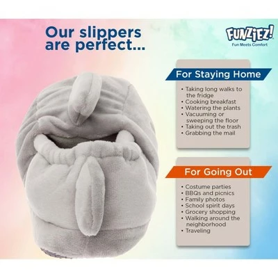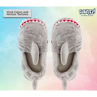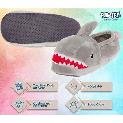 Sink your feet into these awesome Shark Plush Slippers from Funziez. These fun and ferocious plush shark home shoes feature their classic sharp teeth, wide set eyes, and a dorsal fin too. A cushioned footbed provides unmatched comfort and support, while the gripped outsole gives you the traction you need to lounge around the house without slipping. Great for all ages and any occasion, so everyone can relax at home swimmingly.We offer a variety of sizing for Men and Women. Please see the size chart for details.
