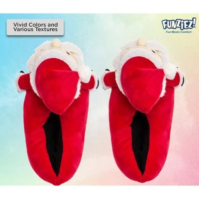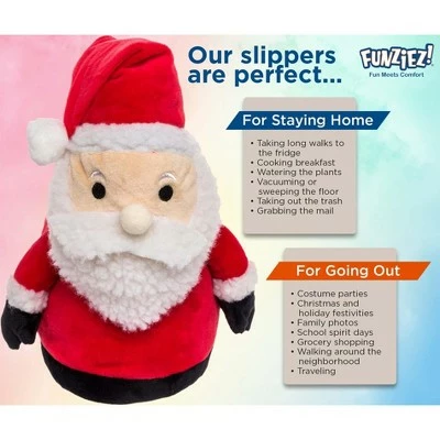 Jingle all the way! Ho! Ho! Ho! Celebrate the season in true festive style with these sweet Saint Nick Slippers from FUNZIEZ! Full of delight, these darling house shoes are sure to get you in the spirit! FUNZIEZ! Santa Slippers feature a soft velour face with bead eyes, stuffed nose, Sherpa cuffs, beard, and hat. Santa’s arms are stuffed, and his jolly cap is half stuffed to fold forward. These slippers are perfect while eating cookies or checking your list twice. These warm and cozy slippers with dashing details are sure to bring a smile to you and others this holiday season!