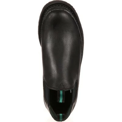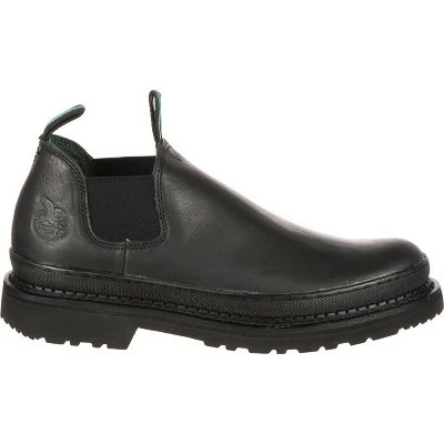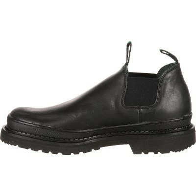 These black Georgia Giant Romeo Work Shoes have been crafted with full-grain leather that’s durable and soft. There’s a bumper guard just above the work shoes’ round toe that helps protect this footwear against abrasions and exposure to oil. The pull loops are strong and make it easy to get into the work shoes.Whether you’re wearing these romeo shoes to work or casually around town on a hot summer day, your feet remain dry because the men’s shoes have been made with a high-performance lining. Your feet will be comfortable on the footwear’s EVA midsole; its cushioning feels great and helps alleviate the weight you put on your feet. To make the structure sound and durable, the work shoes have Goodyear® welt construction.A steel shank has been incorporated into the comfortable work shoes for steady footing; it supports your foot arch and it gives the footwear more stability. The Georgia Giant polyurethane outsole is cushioning and flexible; plus, its resistance to oil, abrasions and chemicals allows it to be highly durable.Have you been wanting a pair of men’s comfortable shoes that you can wear to work? If so, these Georgia Giant Romeo Work Shoes are perfect for you!