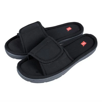 Pamper your feet with the Hanes Men�s Velcro Closure Slide-On Slipper with Memory Foam. Hanes slippers feature a durable, slip resistant rubber sole that�s great for indoor and outdoor use. The memory foam cushioning allows the slipper to form to the shape of your foot, creating the most comfortable custom fit. Hanes footwear will provide you with all the comfort, style, flexibility and support you need in a slipper shoe. Find your best slipper fit by choosing from Mens standard US shoe sizes S-XXXL. Size equivalents are as follows: Small (Mens US 6, 5 -7, 5), Medium (Mens US 8 9), Large (Mens US 9, 5-10, 5), X-Large (Mens US 11-12), XX-Large (Mens US 12, 5-13, 5), XXX-Large (Mens US 14-15)