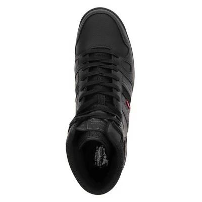 Made with vegan synthetic leather materials, these hightop sneakers will show off your laid-back casual side. Perfect for long lasting comfort, these men’s shoes have a lightly padded collar and tongue, as well as an ultra-cushioned footbed and durable rubber outsole to keep your feet relaxed and supported. With these men’s sneakers you’ll always be stepping out feeling your best, thanks to the detailed, contrast stitching, iconic Levi’s logos, and crisp outsole. Keeping it casual while staying classy has never been easier than it is with these hightop sneakers.