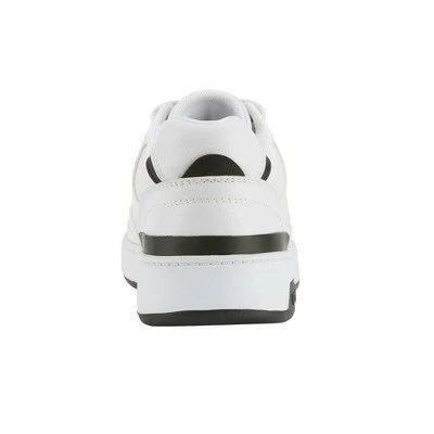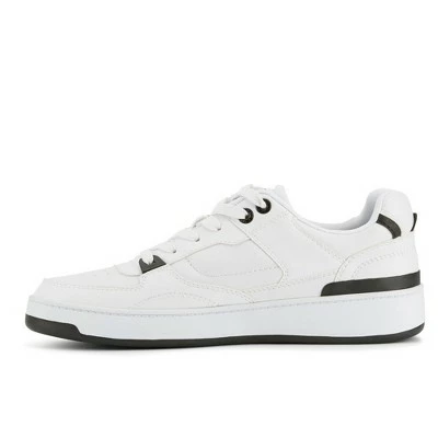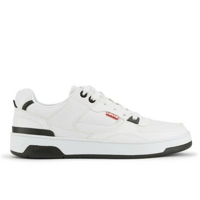 Take on your day in confidence with these sleek, yet casual men’s sneakers. Made with synthetic vegan leather, these lowtop sneakers are sure to take your style up a notch. The bold, black accents against the white uppers keep your look laid-back without sacrificing style or flare. The lace-up design and subtle Levi’s branding easily pair with any casual outfit, so you’ll never have to wonder if you’re looking your best. Designed for style and made for comfort, these men’s shoes have extra padding in the tongue and collar, a cushioned footbed, and a durable rubber outsole to keep your feet relaxed, supported, and comfortable all day long.