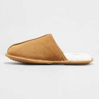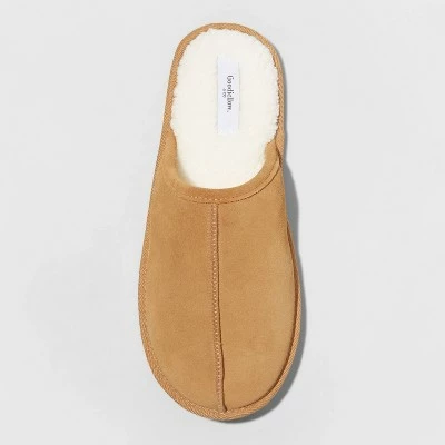 Kick back and relax wearing these Alex Scuff Slide Slippers from Goodfellow & Co™. These men’s slide slippers make a great pick for wearing at home. They feature a closed toe design, along with a suede finish on the cuff detail for on-trend style. The fuzzy footbed keeps your feet in plush and warm comfort, while the slip-on design allows for quick and easy wear. Plus, the textured bottom offers surer footing on slippery floors.