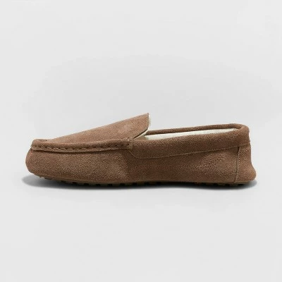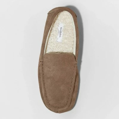 Amp up your footwear collection with these Carlo Genuine Suede Moccasin Slippers from Goodfellow & Co™. Showcasing an elegant exterior with stitched detailing on the front for added flair, these moccasin slippers feature a slip-on design for easy on and off. These suede slippers are crafted from 100% leather with soft lining and a relaxed moccasin fit that will hug your feet in comfort and style from relaxing around the house to running outside to grab the paper or mail.