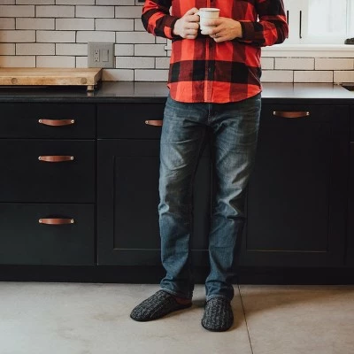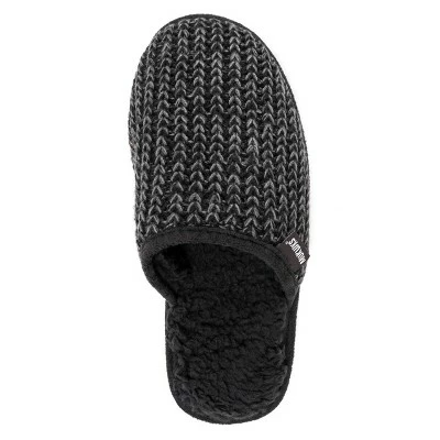 Slide on MUK LUKS Men’s Gavin Scuff Slippers for ultimate comfort. This knit slipper is lined with faux fur to keep toes warm and the foam insole will keep you comfortable while lounging indoors or outdoors. Wipe with a damp cloth. No bleach. Lay flat to dry. Imported.-TPR Indoor/Outdoor Sole-100% Polyester Faux Fur Insole-100% Acrylic Upper-100% Polyester Faux Fur Lining-Foam Insole-Men’s Whole Sizes S (8-9), M (9-10), L (11-12)-Multiple color options available