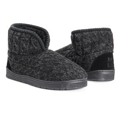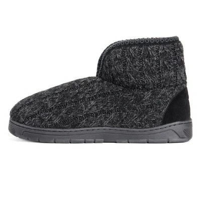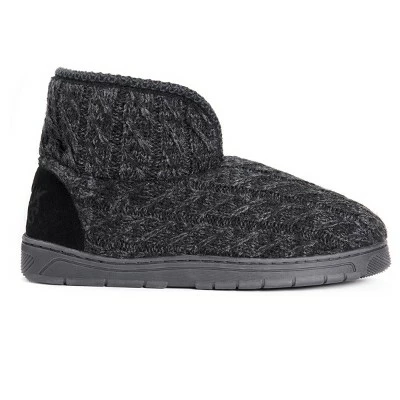 When temps start to drop, MUK LUKS Men’s Mark Bootie Slippers has got your back. Soft plush lining & knit upper offers full coverage to keep feet warm while the durable sole allows you to lounge indoors and outdoors. Wipe with a damp cloth to clean, no bleach, lay flat to dry. Imported.-TPR Indoor/Outdoor Sole-100% Polyester Faux Fur Insole-100% Acrylic Upper-100% Polyester Faux Fur Lining-Pull-on ankle design-Multiple color options available-US Men’s whole size S (8-9), M (10-11), L (12-13)